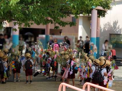 お家で飾ってね! 公開日 2022/07/07 更新日 2022/07/07 きょうのようちえん 昨日大笹につけた飾りを、今日は小笹にわけて持って帰りました。お家で飾りながら、夜空を見上げてみてくださいね。お天気になってよかったです! いいね(0)