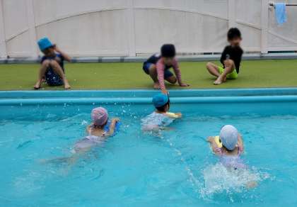 朝は暑くなる前に校庭で遊んだり、プールではビート板を使って浮力を感じたりしながら充実した一日を過ごしていました。「プール楽しかったなぁ」「早く入りたい」と次のプールを楽しみにしている様子が伺えました!