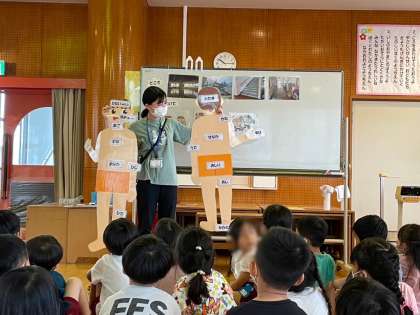 どんなけががあるのか話をした後、けがの手当ての仕方についての○×クイズをしました。