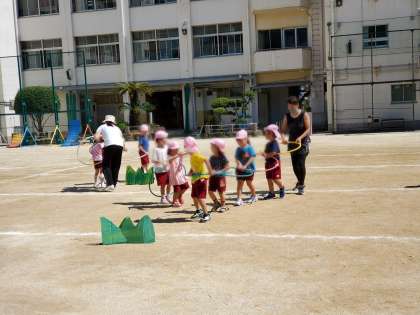 フープの電車 公開日 2022/09/26 更新日 2022/09/26 きょうのようちえん うさぎ組も園庭で体を動かして遊んでいます! 今日はフープを使って、友達と電車になって遊んでいました! いいね(0)