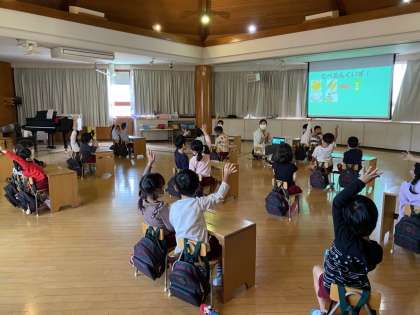 また小学校へ行くとお弁当から給食になるよ!と話をして小学校の給食の献立も紹介しました(^^)