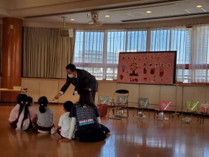 10.11月誕生会 公開日 2022/11/09 更新日 2022/11/09 きょうのようちえん 今日は誕生会をしました。園長先生から手品や歌のプレゼントがありました。きりん組からも牛乳パックでつくった「カラフルヨーヨー」を誕生児にプレゼントをしました。 お家の方とはやきいもジャンケンをしてふれあいました。 ラーメン体操やどんぐりころころの歌をみんなで歌って、楽しく過ごしました! 来月の誕生会もどんな遊びがあるのか楽しみですね〜(^_^) いいね(0)