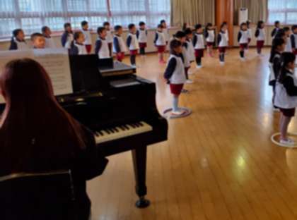 中大淀幼稚園 うたごえひびけ 公開日 2022/11/18 更新日 2022/11/18 きょうのようちえん 中大淀幼稚園 うたごえひびけを開催しました。きりん組が保護者の方に「おべんとバス」と「にじのむこうに」の歌を聴いてもらいました。「おべんとバス」の手遊びは保護者の方にも一緒にしてもらい楽しむことができました。「にじのむこうに」の歌では、素敵な歌声がプレイルームじゅうに響き渡っていました。 いいね(0)