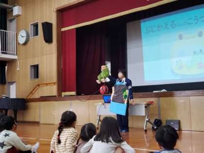 交通安全指導 公開日 2022/11/18 更新日 2022/11/18 きょうのようちえん 大淀小学校の1年生と一緒に交通安全指導に参加しました。大淀警察署の婦警さんに動画や、カエルの人形を使って信号や横断歩道の渡り方、車の側で遊ばないこと、右側通行をするなど教えてもらいました。教えてもらった交通ルールを守って安全にすごしましょう。 いいね(0)