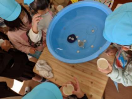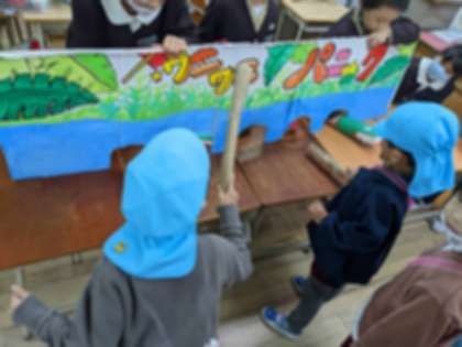 今日は、大淀フェスティバルに参加させてもらいました。めいろや、コインおとしなどのゲームをしたり、きりん組のわなげやさんに小学生や、先生がきてくれたりしました。お兄さんお姉さんたちは幼稚園の子どもたちがわかるように優しく説明や誘導をしてくれました。きりん組さんは、ルールの説明や応援をがんばっていました。みんなが笑顔で楽しめた大淀フェスティバルでした。
