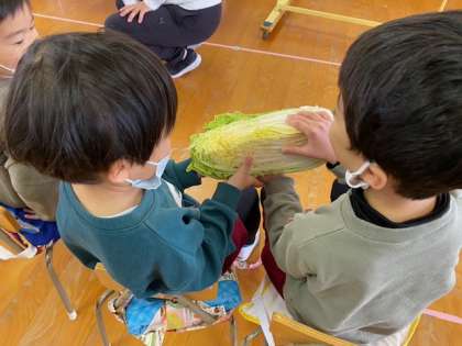 お弁当時には、「ブロッコリーが入っていた!」「かぼちゃが入っているよ!」と冬野菜に興味をもち、知らせてくれる姿がみられました☆