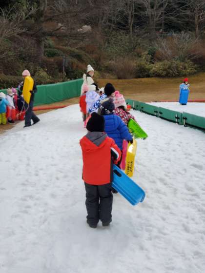 無事に着きました。 今からそり遊びです!