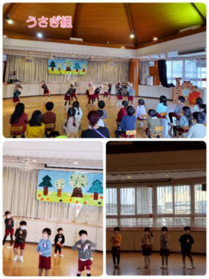 生活発表会ごっこ 公開日 2023/01/31 更新日 2023/01/31 きょうのようちえん 今日は、生活発表会ごっこをしてそれぞれのクラスの劇遊びや、歌、遊びなどを見合いました。年長児からは年少児の姿を「かわいかった」と見てくれていました。年少児は年長児の合奏を聴いて「素敵だった」と、憧れの気持ちをもっていました。 当日までに、更にクラスで話し合ったり、劇遊びの役を変わったりして遊びながら、期待や意欲を高められる保育をしていきたいと思います。 いいね(0)
