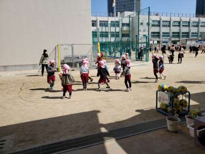 うさぎ組は、みんなで転がしドッジボールを楽しんでいました。遊びの中で、ルールを守って遊ぶ大切さを知ったり、当てられたら悔しいという気持ちが芽生えたりする姿が見られました。