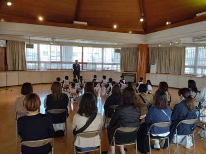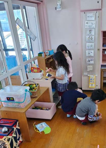 今日から幼稚園が始まりました。きりん組に進級した子どもたちは元気に登園していました。始業式では、園長先生から新しいうさぎ組に優しいお兄さん、お姉さんになってください。と話をしてもらいました。始業式の後はきりん組の保育室で好きな遊びをしたり、外で遊んだりしました。明日からも遅れずに登園してくださいね。