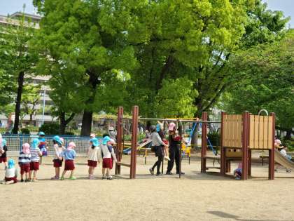 浦江公園 公開日 2023/04/21 更新日 2023/04/21 きょうのようちえん 今日は全園児で近所の浦江公園に遊びに行きました。タンポポの綿毛を見つけたり、遊具で遊んだり、鬼ごっこをしたりそれぞれ好きな遊びを見つけて遊びました。うさぎ組はきりん組に手をつないでもらって、交通ルールを守って安全に行くことができました。 いいね(0)