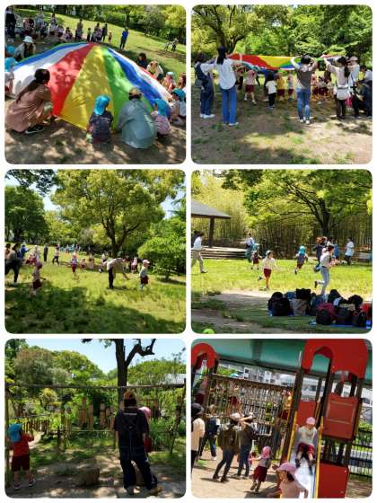 上坂部西公園 公開日 2023/05/16 更新日 2023/05/16 きょうのようちえん 今日は、親子園外保育で上坂部西公園に行きました。お家の人と一緒にパラバルーンをしたり、しっぽとりをしたりしてとても心地よいお天気の中で存分に体を動かして遊びました!午後からの自由時間は遊具や竹の楽器、輪投げ、ドングリ転がし、バラ園のお散歩などそれぞれで楽しんでいました(^_^) いいね(0)