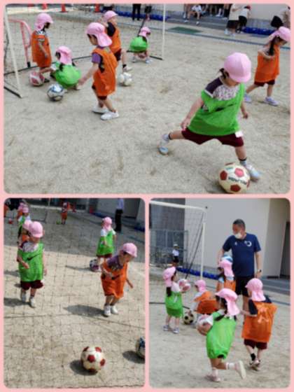 うさぎ組は初めてでしたが、コーチのお話を聞いて、自分なりにボールを追いかけることを楽しんでいました!