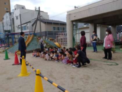 新入園児の子どもたちは初めて避難をしましたが、約束を守って避難することができました。