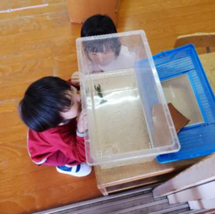 ザリガニ 公開日 2023/05/23 更新日 2023/05/23 きょうのようちえん 幼稚園の池にいたザリガニをよく見えるように飼育ケースにいれて保育室に置いておくと、ザリガニの様子を喜んで見ていました。しばらくすると「お口のところがペロペロしてるよ!」と自分で発見したことを教えてくれました。 いいね(0)