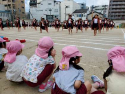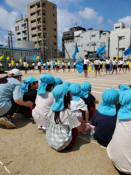 6年生との幼小交流で運動会の演技を見せてもらいました。6年生のお兄さん、お姉さんの一生懸命の迫力のある姿に幼稚園の子どもたちは喜んだり、憧れの気持ちをもったりしながら見ていました。旗を振っている音や声が揃っているかけ声もすごかったです!!自分のお兄ちゃんが踊っているのを見つけて笑顔で見ている子どももいました。
