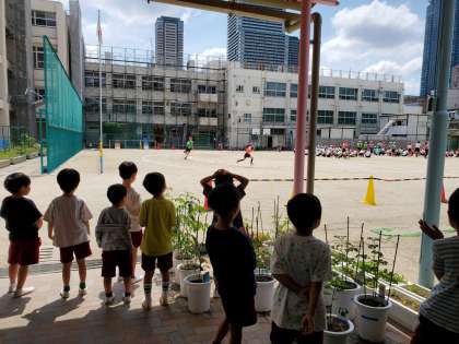 その後リレーをしている姿もテラスから見ていて、自然に応援していました。みんなの応援の声がきっと届いていたことでしょう(^_^)