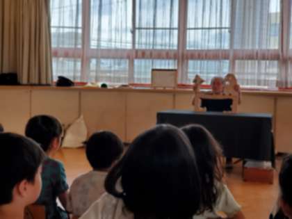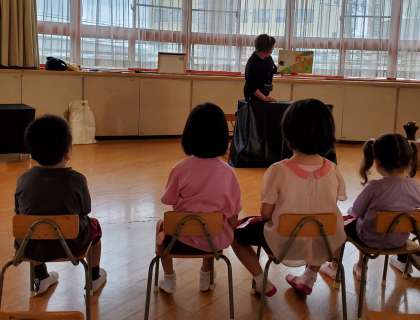 今日は北図書館の絵本の会の方が3名来てくださいました。4歳児、5歳児と年齢に応じたお話の内容を考えてくださり、新聞紙を使ったお話や、今の季節にあった絵本や紙芝居などたくさん読んでもらいました。5歳児は「がらがらどん」のお話を組木で見せてもらって、音や積み重なる所に興味をもって見ていました。紙鉄砲も見せてもらったので、弁当の後に遊ぶ子どもがたくさんいました(^_^)