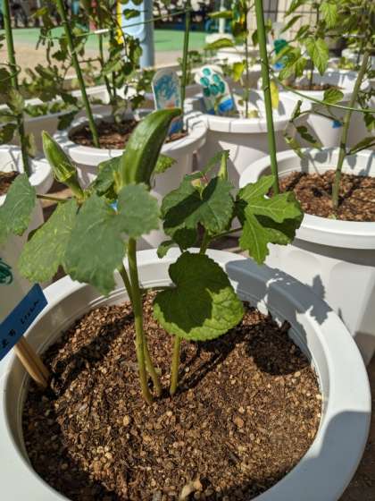 ふれあい栽培で植えた夏野菜が、今週に入り、収穫できるまで生長してきました。収穫できた子どもたちは「明日のお弁当に入れてね!」と頼んでいたり「幼稚園で採れた野菜だから美味しいよ」とおうちの人に声を掛けてもらったりしていました。これからも沢山収穫できて、好き嫌いなく食べられますように!