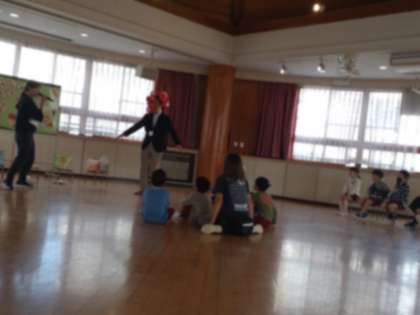 きりん組の出し物はみんなと一緒に「やきいもグーチーパー」を楽しみました。