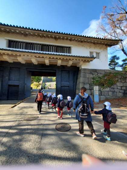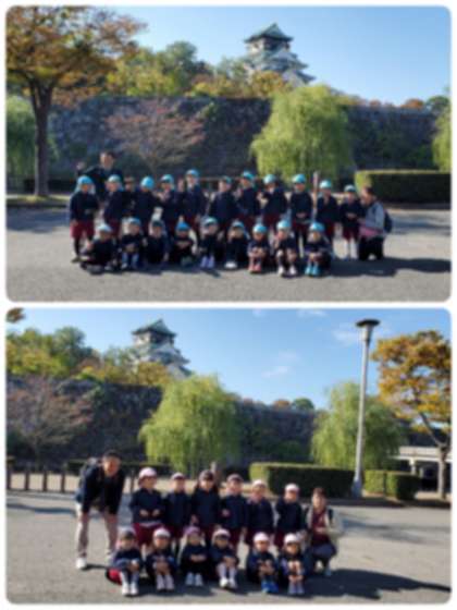 きりん組さんがお城の上から「お〜い」「うさぎ組さ〜ん」と呼んでくれたので「きりん組さ〜ん」と下から元気に呼んで手を振っていました。
