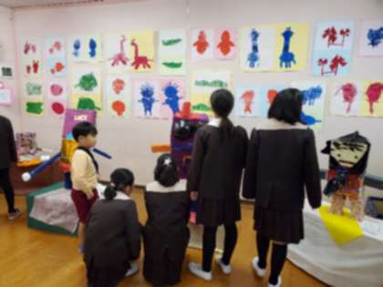 小学生の皆さんが作品展を見にきてくれました。5・6年生とはペアを組んで回りました。つくった作品や絵を伝えると「すごいなぁ」「かわいいねぇ」などと言葉をかけてもらってとても嬉しそうにしていました!