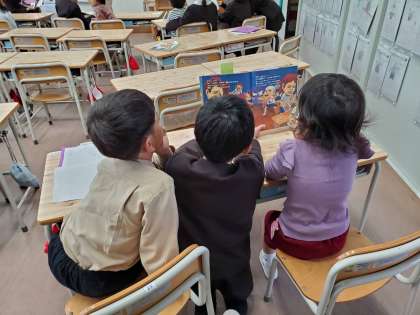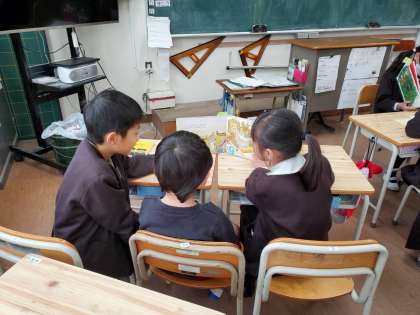 今日は大淀小学校の2年生と絵本の読み聞かせ交流をしました。