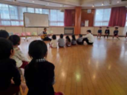 園長先生からのプレゼントでは、ホワイトボードにたくさんの絵をかいてくれたり、「ジングルベル」の歌をギターの素敵な音色で弾いてくれたりしました!