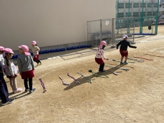 【うさぎ組】縄跳び遊び 公開日 2024/01/18 更新日 2024/01/18 きょうのようちえん うさぎ組の子どもたちは寒さに負けず、縄跳びで遊ぶことを楽しんでいます。 縄跳びを使って簡単な体操をしたり、並べてジャンプしたり、綱渡りをしたり・・・ 養護教諭の先生から縄跳びが上手くなるためのポスターをいただきました。 ポスターを見ながらみんなで前とびに挑戦しました。 いいね(0)