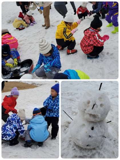 雪遊びもしました。みんなで力を合わせて雪だるまをつくりました。