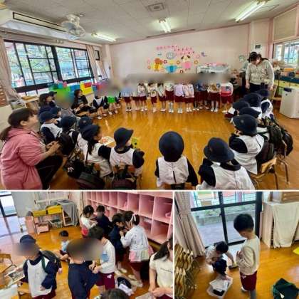 入園3日目です(^^)/ 公開日 2024/04/12 更新日 2024/04/12 きょうのようちえん 登園後の朝の用意に引き続いて、みんなで一緒に外遊びに♪ そして…4歳児は園内探検にしゅっぱーつ!! うさぎ組列車に変身して、保健室、職員室、園長室、管理作業員室など、いろいろなおへやをまわりました☆ いいね(0)