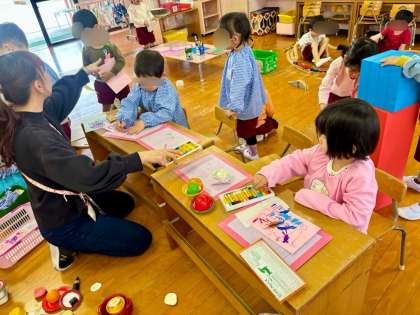 お絵かきスタート! 公開日 2024/04/16 更新日 2024/04/16 きょうのようちえん 好きな遊びの時間に、お絵かきをしました! クレパスでぐるぐるや果物やお花、いろいろな絵をかきました。この絵が、なんと『アレ』に変身します♪ 何に変身するかは、お楽しみに☆ いいね(0)