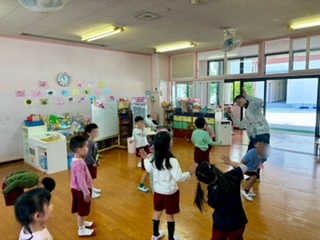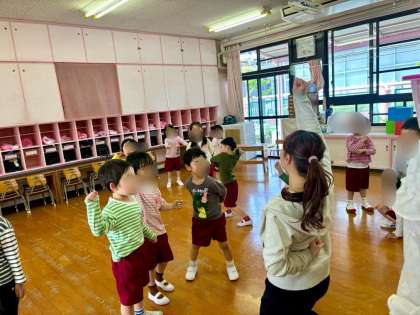 ?先生や友達と一緒に、あひるのダンスやむしむしジャンケンを楽しみました♪先生とジャンケンポン!今日は勝ったかな?あいこかな?また、ジャンケンで遊びましょうね(^-^)v