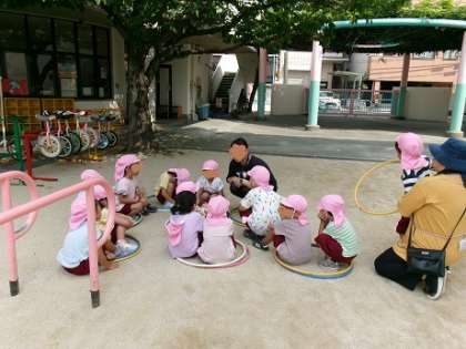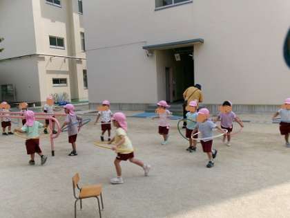 フープで遊ぼう♪ 公開日 2025/08/27 更新日 2025/08/27 きょうのようちえん 4歳児がフープ電車に乗って遊びました。 ひとり電車、ふたり電車、みんな電車…いろいろな電車に乗って、今日も安全にしゅっぱつしんこーう!! いいね(0)