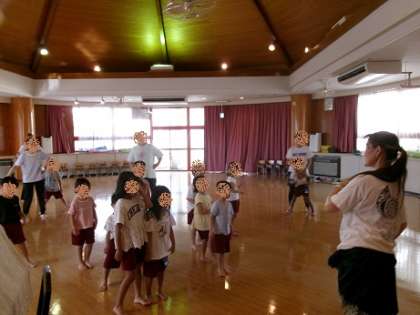 預かり保育の子どもたちが、地域の方にフラダンスを教えていただきました🌺今日は、「カホロ・カオ・ヘラ」やハンドモーションに挑戦!ドキドキしたけど、楽しかったね♪