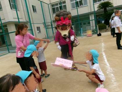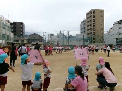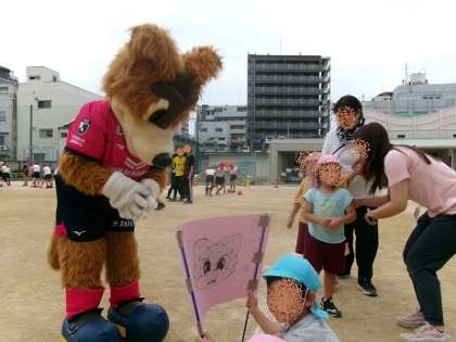 預かり保育の時間中に、大淀小学校の校庭でセレッソ大阪からいただいたサッカーボールを使った授業がありました。預かり保育の子どもたちは、みんなで応援に行ってきました♪