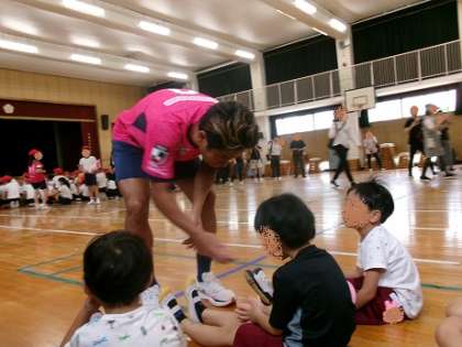 預かり保育9 公開日 2025/09/04 更新日 2025/09/04 きょうのようちえん サッカーボールを用いた授業に続いて、サッカーボールの贈呈式がありました。 セレッソ大阪の香川選手の話を聞いたり、6年生が質問をしたりする様子を見学しました。香川選手がお話してくださったように、これからも体をいっぱい動かして遊びましょうね(^^)/ いいね(0)