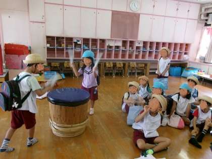 おまつり太鼓 公開日 2025/09/05 更新日 2025/09/05 きょうのようちえん 5歳児の保育室から、楽しい樽太鼓の音が聞こえてきました! 夏休み中に見聞きしたおまつり太鼓の印象が強く残っていたようです。勇ましく、元気な声の掛け声も聞かせてくれました(^^)/ いいね(0)