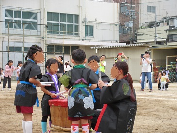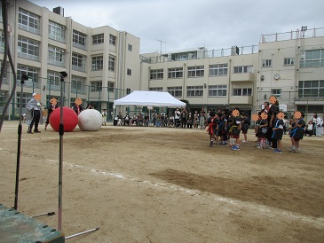 【プログラム5】むしたちのおまつり 公開日 2025/10/05 更新日 2025/10/05 きょうのようちえん 5歳児の樽太鼓”大阪締め”から始まる、むしたちのおまつり!! 赤チームと白チームに分かれて、玉入れまつり!すると、フンコロガシ大王がやってきて… いいね(0)