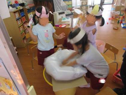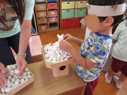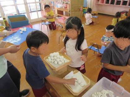 お月見遊び 公開日 2025/10/07 更新日 2025/10/07 きょうのようちえん 昨日は、中秋の名月。 4歳児がお月見だんごづくりをしました♪昨日、かわいいおだんごを飾って一夜明けると、うさぎやユニコーンに変身した4歳児の『お月見遊び』が始まりました(*^_^*) いいね(0)