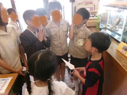 園庭に落ちていた赤帽子を5年生にお届けしたら、持ち主の5年生のお兄さんと友達のみなさんが、お礼を言いに来てくれました。そして、素敵な手づくりおもちゃも持ってきてくれました。
