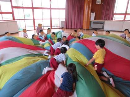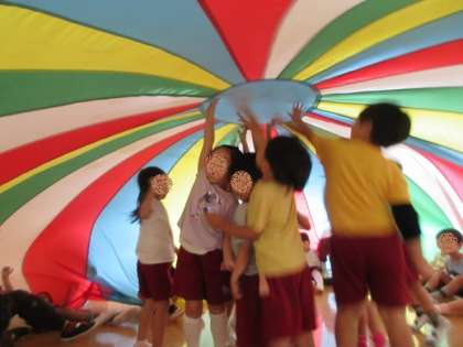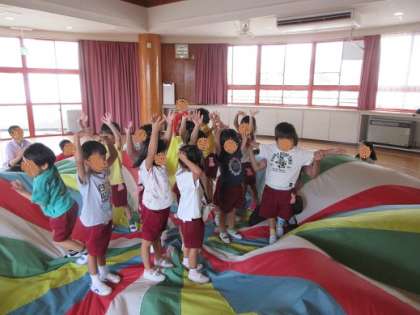 運動会ごっこ楽しいね 公開日 2025/10/16 更新日 2025/10/16 きょうのようちえん 運動会で5歳児が楽しんでいたバルーン遊びを、「きれいだなあ」「おもいろそうやなあ」とずっと見てきた4歳児。今日は、5歳児と一緒に思いきりバルーン遊びを楽しみました! お兄さん、お姉さんに遊び方や動かし方を教えてもらい、4歳児もうれしい気持ちでいっぱいになりました(*^_^*) いいね(0)