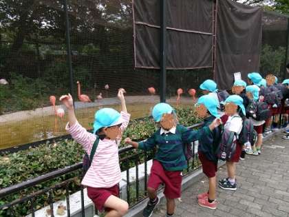 ヒヒ舎の中で遊んでいる様子やスイスイスイーッと気持ちよさそうに泳ぐアシカを見たり、フラミンゴポーズを楽しんだりと、今年も楽しく動物園の園外保育を終えることができました!