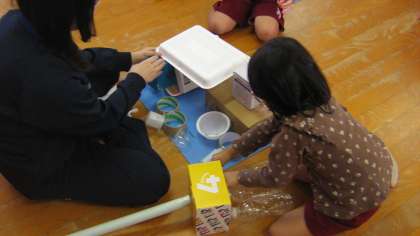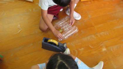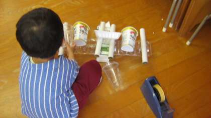 【4歳児】 いろんなものを組み合わせて 公開日 2025/10/23 更新日 2025/10/23 きょうのようちえん 引き続きいろんなものを組み合わせてつくっています。 「幼稚園をつくった!」 「ギターを作った!」 同じ材料でも、イメージを大きく大きくふくらませています。 いいね(0)