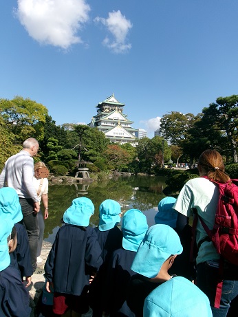 【10月28日】発見の連続…3 公開日 2025/10/29 更新日 2025/10/29 きょうのようちえん 5歳児は、いろいろな向きから大阪城を見て回りました。 「お城って何階建てかな?」「トラさんは、何匹いるでしょう?」など、みんなで大阪城クイズを考えながら、細かいところまでじっくり見ると、「しゃちほこ、あっちにもあった!」「あれ、お花のマークや!」と、どんどん新しい気づきにつながりました。 いいね(0)