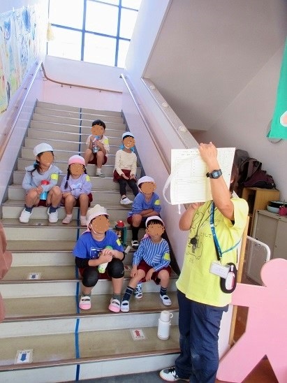 幼稚園に帰ってきて、チームごとに振り返りを行いました。