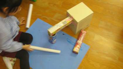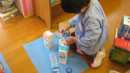 【4歳児】きょうのひとこま 公開日 2025/11/06 更新日 2025/11/06 きょうのようちえん 今日も箱やペットボトルなどを使っていろんなものをつくっています。 家をつくろうとしてテープの貼り方を工夫したり、 足を作る際に、こんな足にしようと思って足の場所を考えたり、 太鼓を作ろうとして、部品を考えたりなど、 思った形にするためにがんばっています。 いいね(0)
