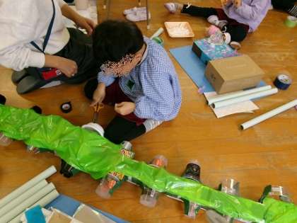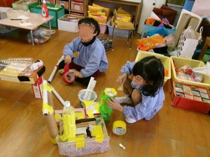 【全園児】どちらのクラスもつくって遊ぶ真っ最中! 1 公開日 2025/11/13 更新日 2025/11/13 きょうのようちえん イメージが固まってきた子どもたちの手が、どんどん進みます。 5歳児は素材選びや接着の仕方等、近くの友達と共に試行錯誤しながら、つくって遊ぶことを楽しんでいます。その表情は、みんなとても真剣です。 いいね(0)