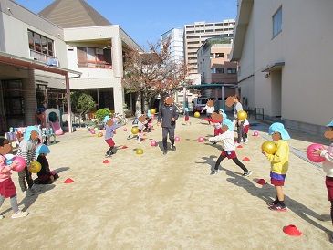 【11月27日】11月のセレッソアスレチックパーク 2 公開日 2025/11/29 更新日 2025/11/29 きょうのようちえん 5歳児は、ボールを使った遊びにチャレンジ! ボールを自分でキャッチしたり、簡単なルールを決め、コーチに向かってボールを投げたり、中当てをしたりしました。 少しずつボールを扱うことに慣れてきた子どもたち。好きな遊びでも、ボール遊びに取り組むことができそうですね♪ いいね(0)