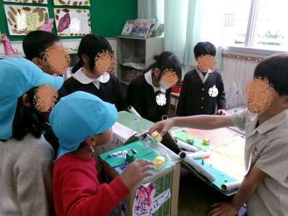 【5歳児】幼小交流〜おもちゃ遊び〜 公開日 2025/12/04 更新日 2025/12/04 きょうのようちえん 5歳児が2年生のおもちゃ遊びに参加しました。 2年生のお兄さん、お姉さんが、遊びのルールや手作りおもちゃの使い方をやさしく教えてくれました。時間いっぱい、目一杯遊ばせてもらえたうえに…景品として、折り紙でつくったものもたくさんもらってホクホクの5歳児でした(^^)/ 2年生の皆さん、ありがとうございました!! いいね(0)